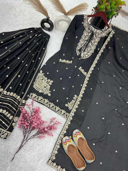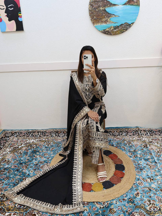 Black Colour Fox Georgette Sequince Embroidery Work Salwar Khameez By WTW