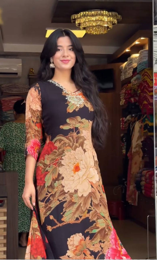 Black Chinon Silk Digital Printed Salwar Suit By WTW