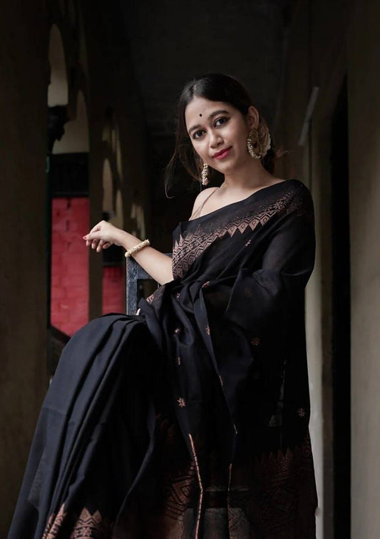 Black Color Latest Design Cotton Silk Saree By WTW