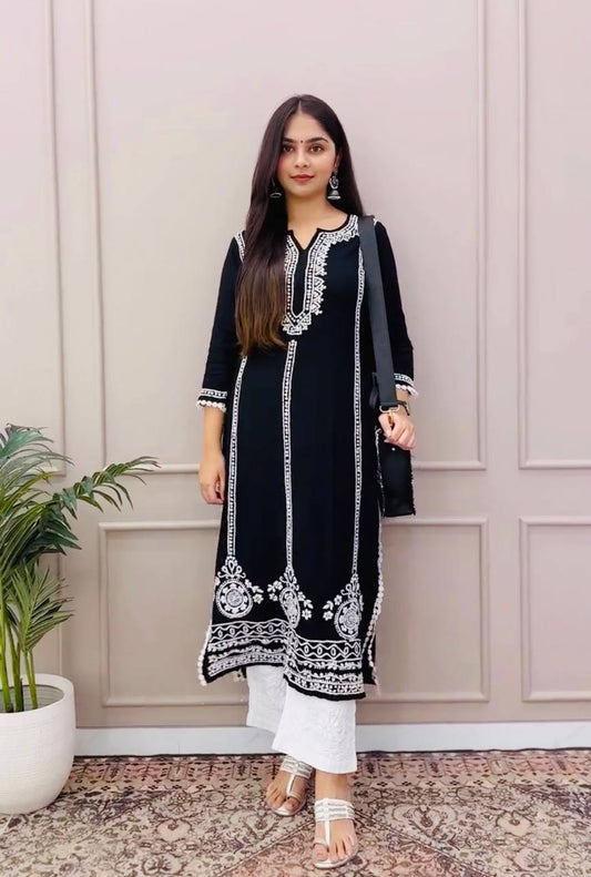 Black And White Designer Kurta Palazzo Set By WTW
