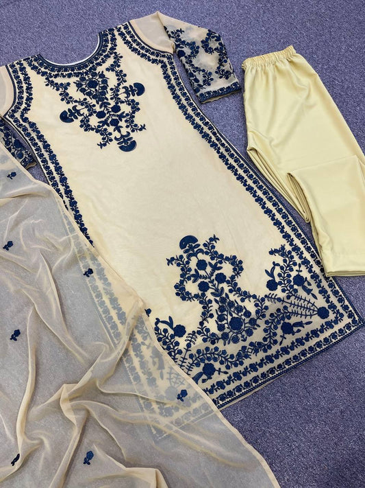 Beautiful White Color Faux Georgette Embroidery Salwar Suit By WTW