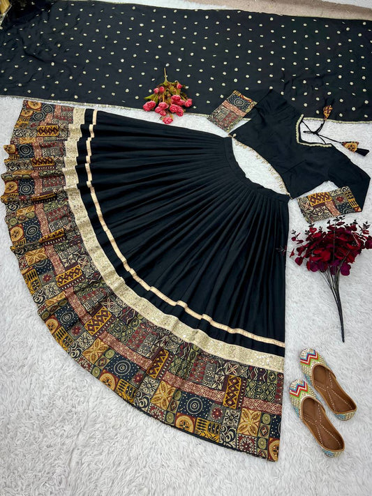 Black Color Chinon Silk Embroidery Work Festival Wear Lehenga Choli By WTW