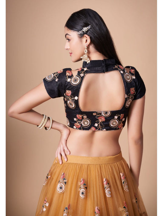 Sequence Net Bollywood A Line Lehenga in Gold By WTW
