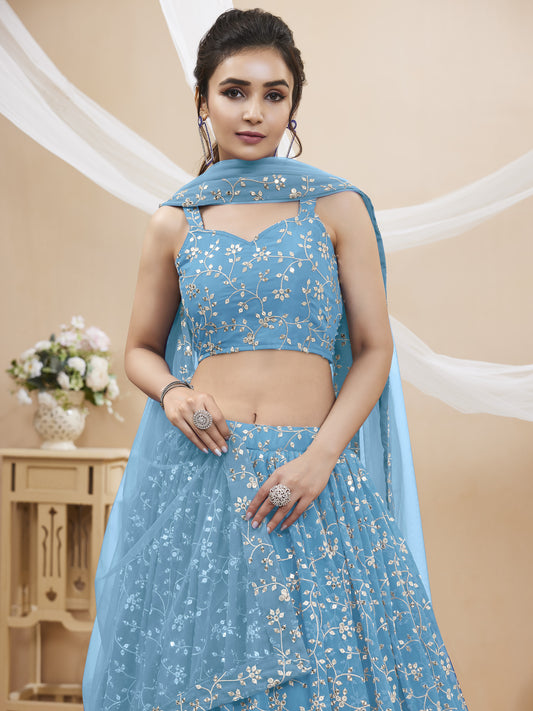 Saundaryam Fashions| Net Party Wear Lehenga in Blue with Embroidered work By WTW