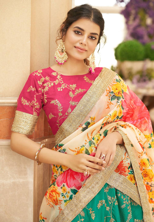 Sea Green Heavy Georgette Lehenga Saree By WTW