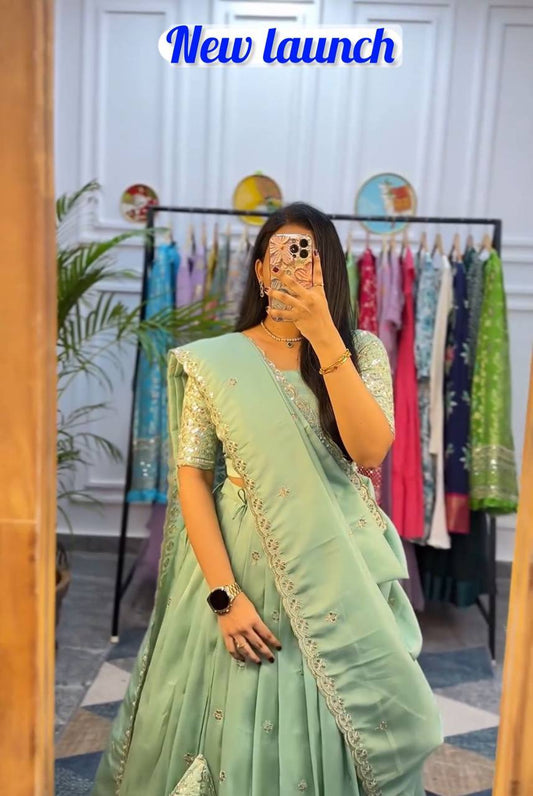 Vichitra Silk Heavy Embroidery Sequence Work Lehenga By WTW