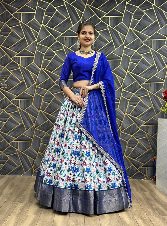 Wedding Wear Blue Colour Lehenga Choli In Digital Printed By WTW