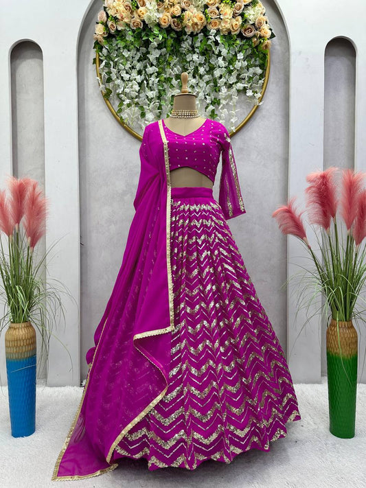 Zig Zag Sequence Work Dark Pink Lehenga Choli By WTW