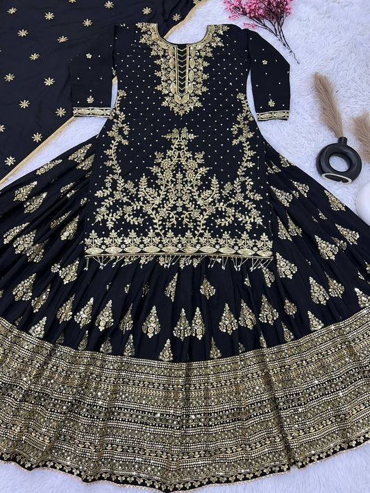 Captivating Embroidery Sequence Work Long Gown By WTW