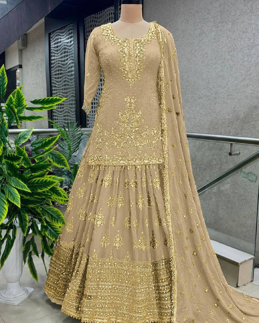 Bollywood Georgette Cinnamon Silk Heavy Embroidery Work Sharara Suit By WTW