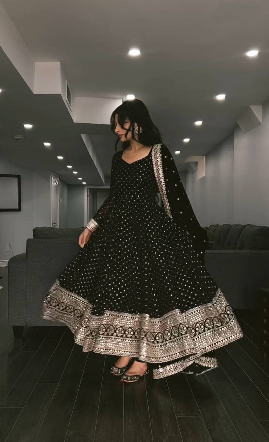 Sequence Gown In Black Color Georgette Fabric Ready To Wear With Dupatta By WTW