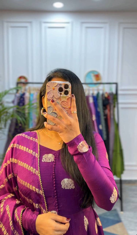 Traditional Wear Purple Color Tussar Silk Foil Printed Gown By WTW