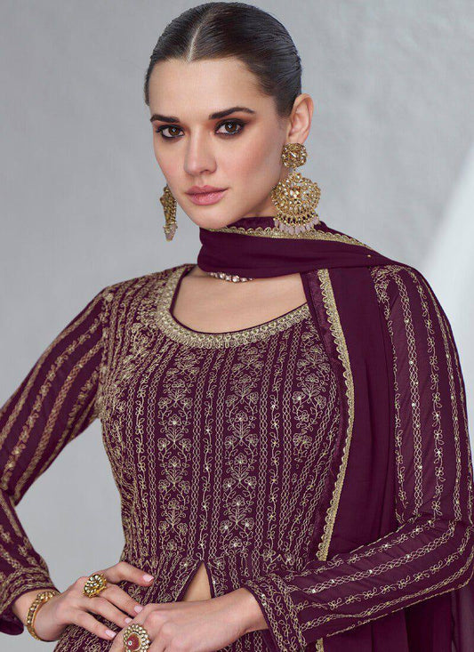 Sublime Violet Color Georgette Embroidery Sequence Gown By WTW