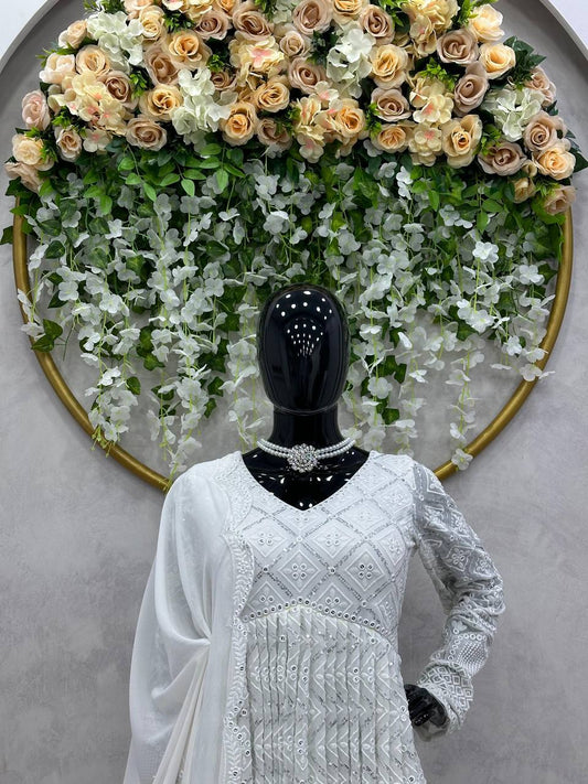 Sequence Gown In White Color Georgette Fabric Ready To Wear With Dupatta By WTW