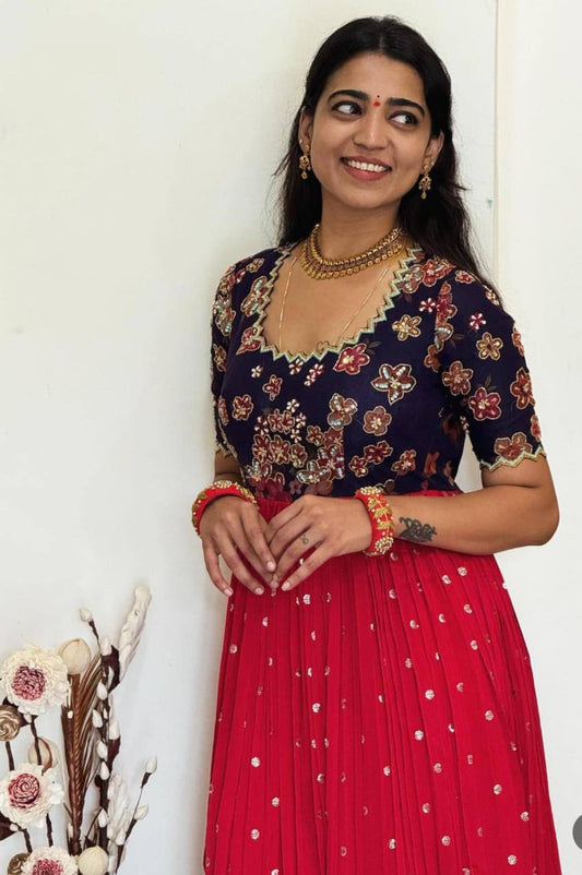 Sublime Red Color Georgette Embroidery Sequence Gown By WTW