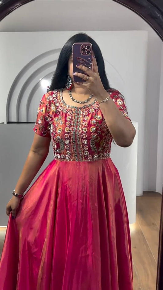 Stunning Pink Color Faux Blooming Anarkali Gown By WTW