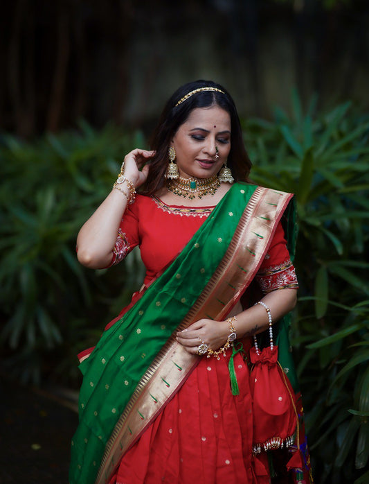 Marathi Style Paithani Silk Orange Lehnga Choli By WTW