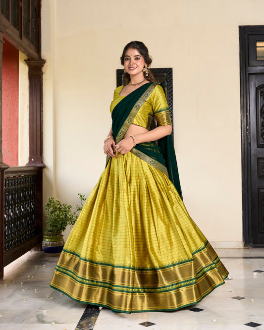 Beautiful Soft Kanchipuram Zari Weaving Work Designer Lehenga Sets By WTW