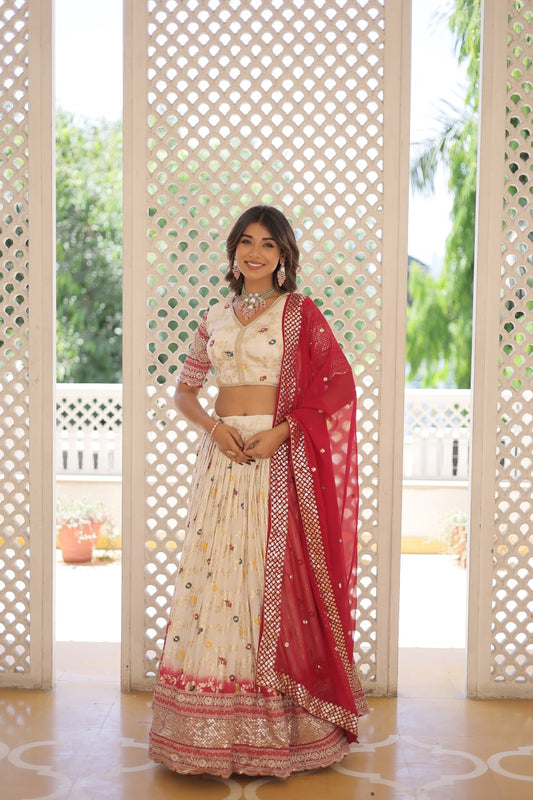 White Viscose Jacquard Sequin Embroidered Lehenga Set By WTW