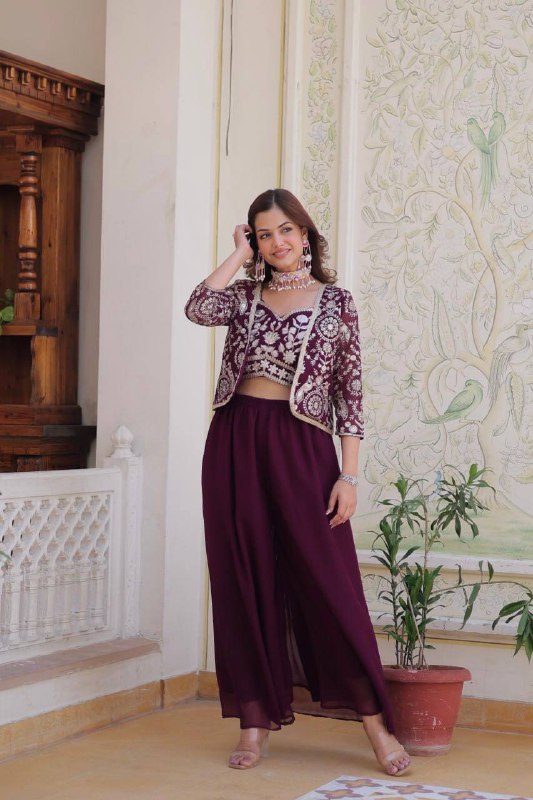Heavy Embroidery Lace Work Choli And Palazzo With Koti By WTW