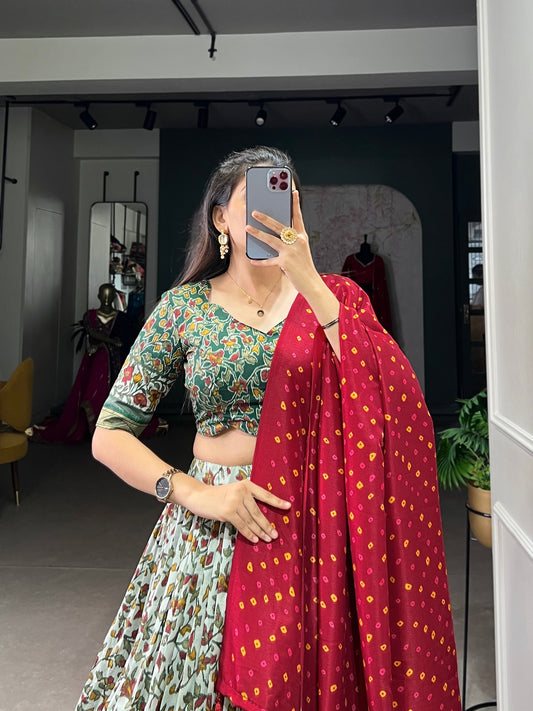 Firozi Color Dola Silk Kalamkari Printed Lehenga Choli By WTW