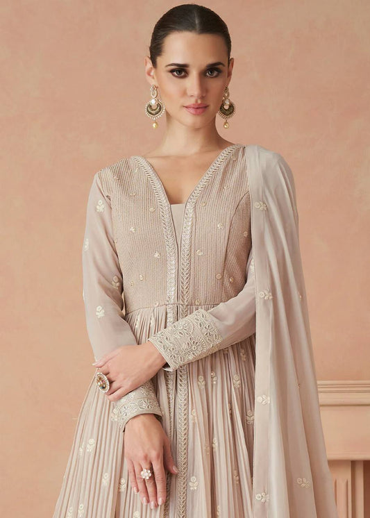 Beige Colour Partywear Embroidery Anarkali By WTW