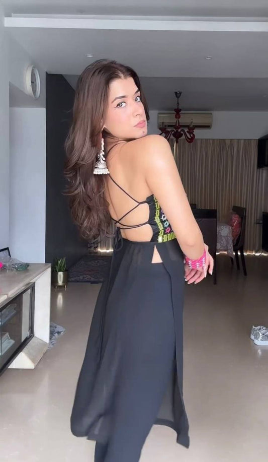Adorable Embroidery Work Black Color Sharara Suit By WTW