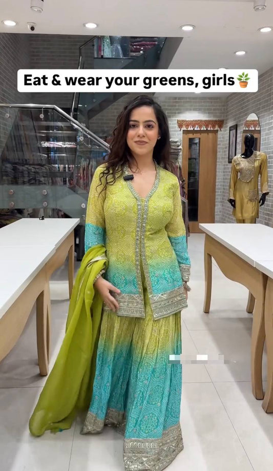 Beautiful Chinnon Silk Punjabi Style Sharara Suit By WTW