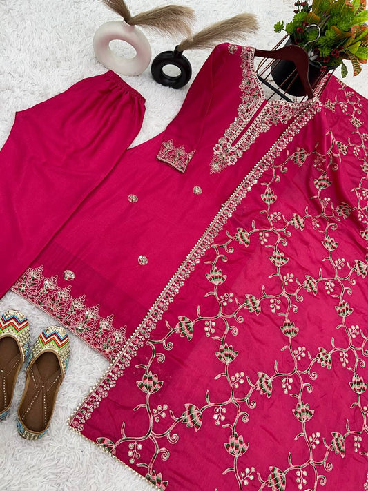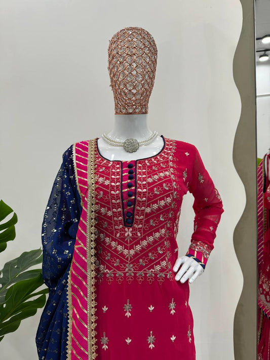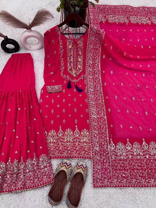 Rani Pink Chinon Silk Sequence Embroidery Work Sharara Suit By WTW