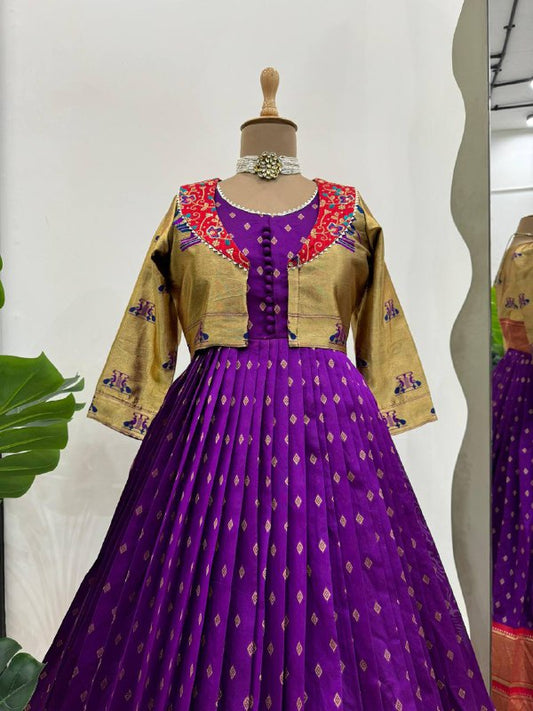Purple Anarkali Designer Sequins Embroidery Lace Work Suit By WTW
