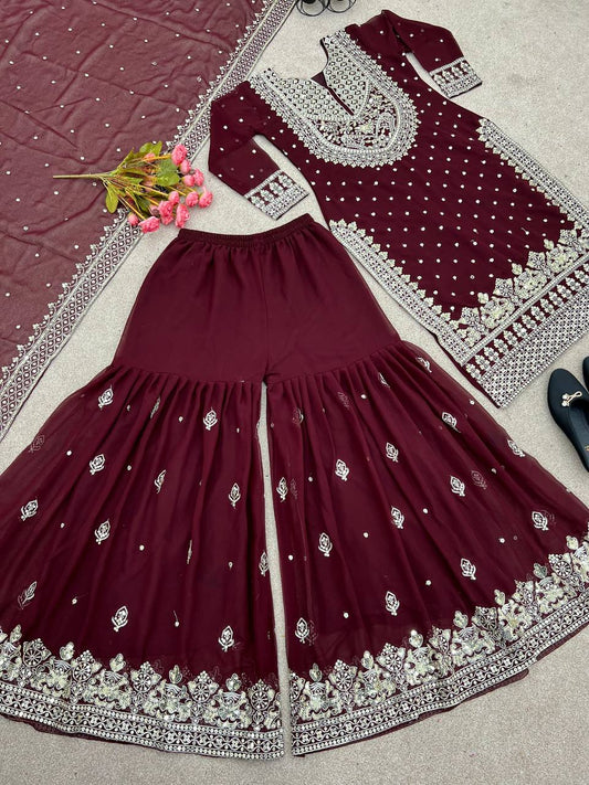 Pretty Wine Color Georgette Embroidery Sequence Salwar Suit By WTW