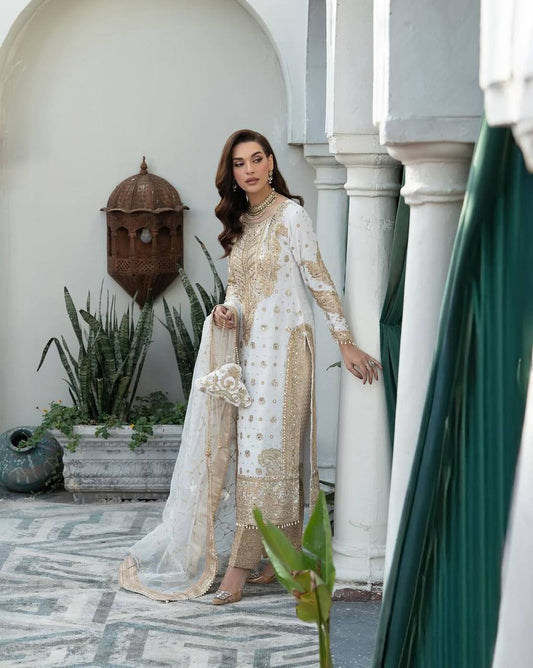 Ravishing Embroidery Sequence Velvet White Color Salwar Suit By WTW