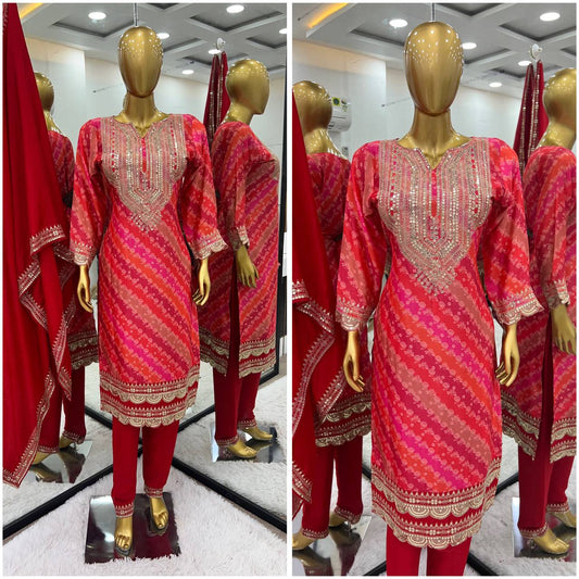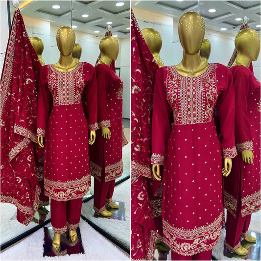 Splendorous Red Color Chinnon Coding Coding Salwar Suit By WTW