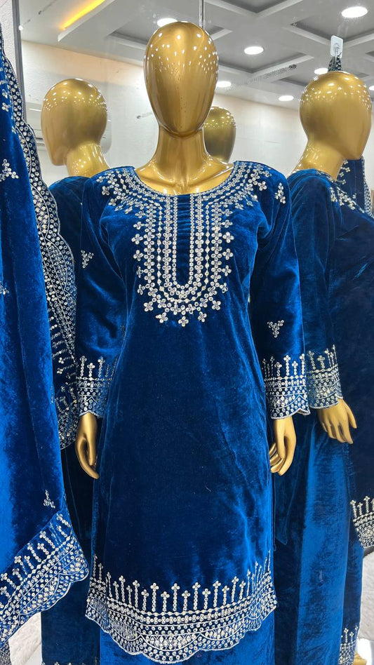 Royal Blue Viscose Velvet Sequence Embroidery Work Salwar Suit By WTW