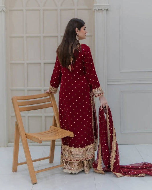 Red Maroon Sharara Set For Wedding By WTW
