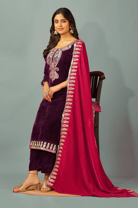 Regal Viscose Velvet Embroidered Ensemble By WTW