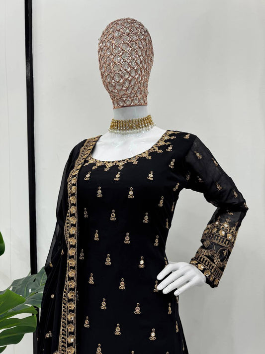Thread With Sequence Work Black Color Delightful Sharara Suit By WTW