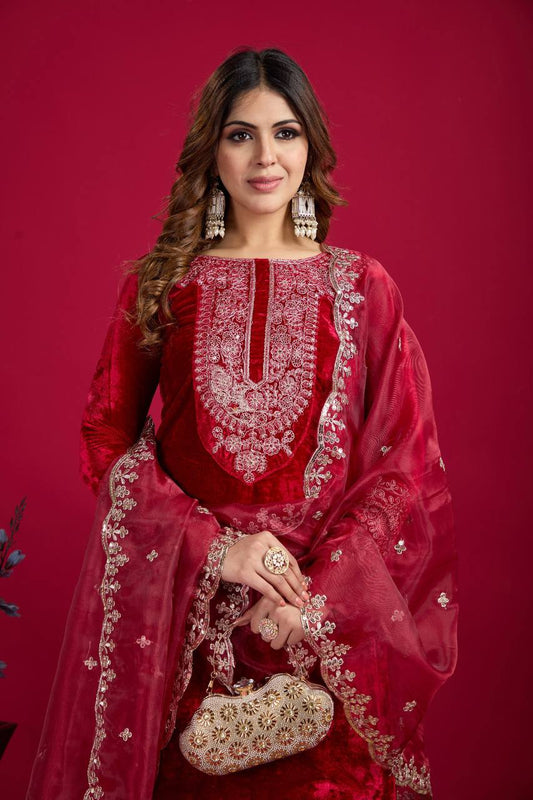 Timeless Red Velvet SalwarmSet With Intricate Embroidery By WTW