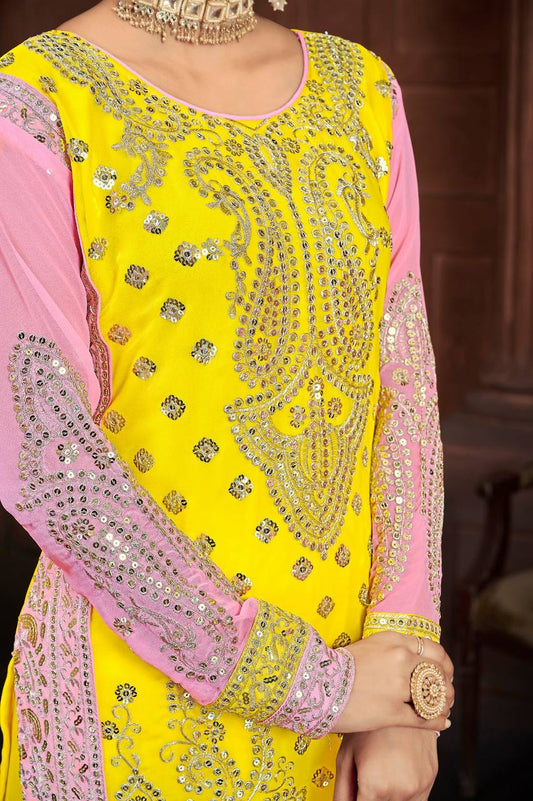 Sublime Yellow Color Heavy Georgette Embroidery Salwar Suit By WTW