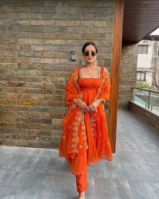 Sublime Orange Color Georgette Coin Lace Border Salwar Suit By WTW