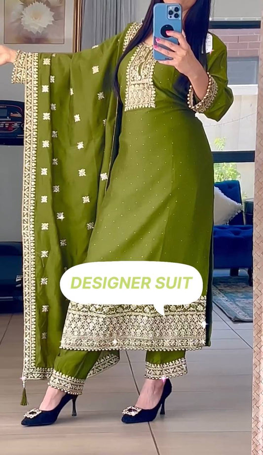 Superb Blue Color Chinnon Silk Embroidery Salwar Suit By WTW