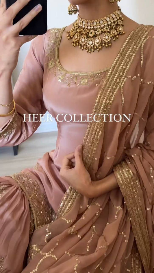 Bollywood Georgette Cinnamon Silk Heavy Embroidery Work Sharara Suit By WTW
