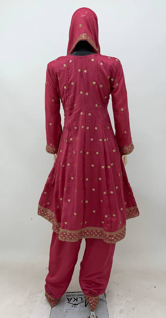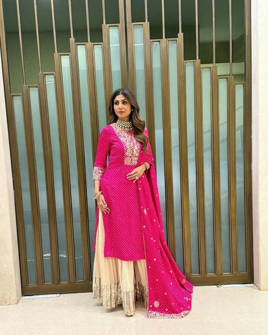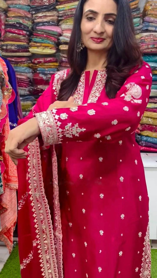 Grand Pink Color Chinnon Silk Embroidery Sequence Salwar Suit By WTW
