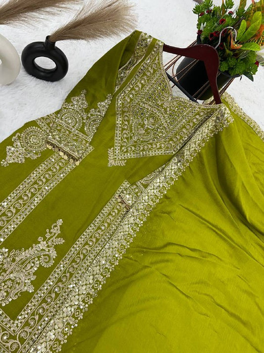 Grand Green Color Chinnon Silk Embroidery Coding Salwar Suit By WTW