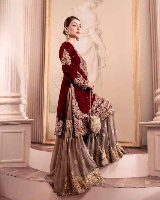 Fashionable Shimmer Embroidery Sequence Work Top Sharara By WTW