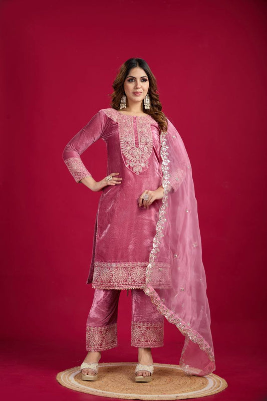 Function Wear Velvet Pink Color Salwar Suit With Dupatta By WTW