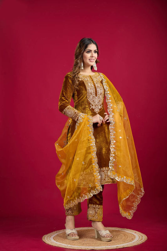 Function Wear Velvet Mustard Color Salwar Suit By WTW