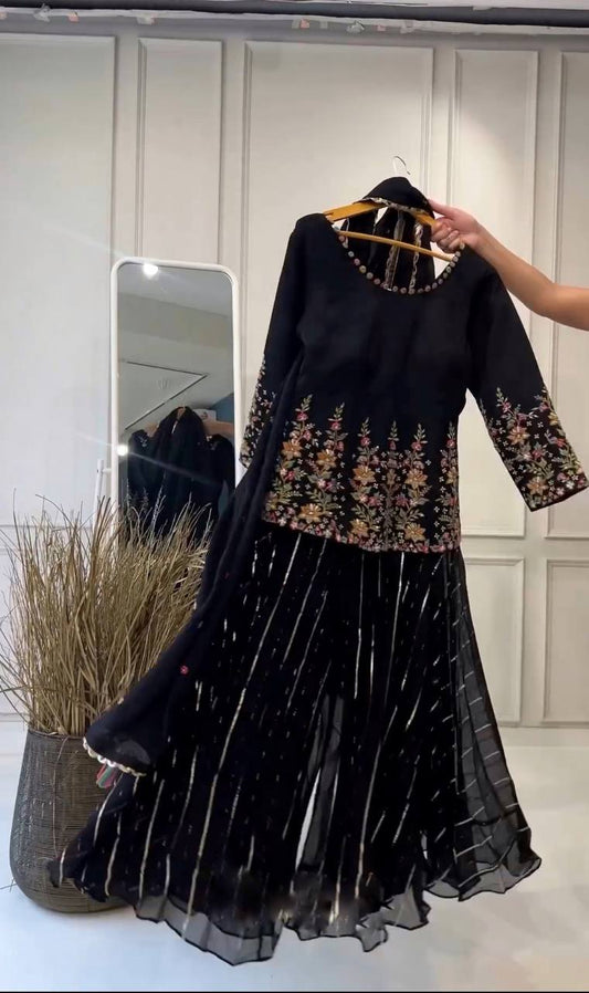 New Sharara Collection Faux Georgette Top-bottom And Dupatta Set By WTW