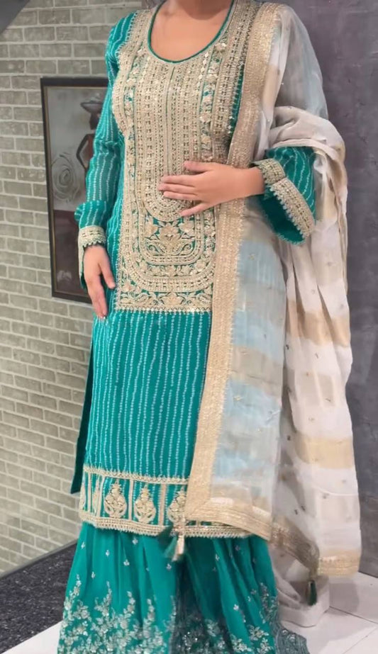 New Designer Fully Stitched Green Fancy Sharara Suit By WTW