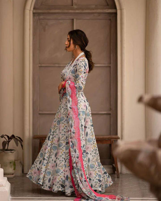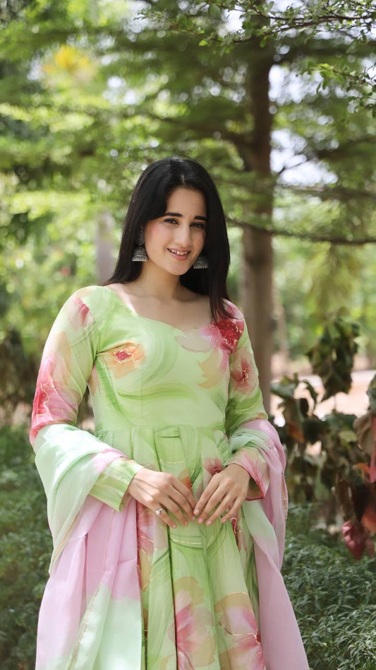Multicolor Digital Print Muslin Anarkali Set By WTW